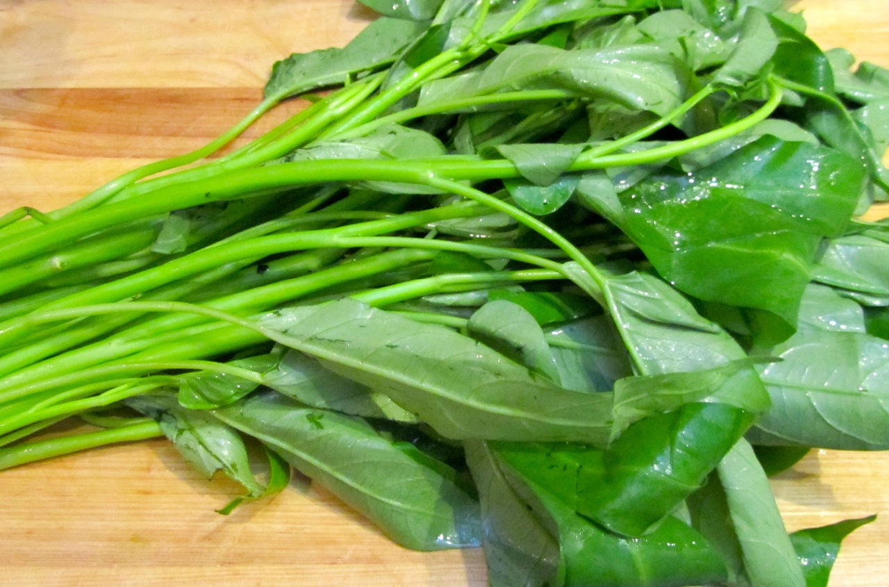 - 1 svazek vodního špenátu (Morning glory - koupíte v asijské tržnici pod názvem rau muống)